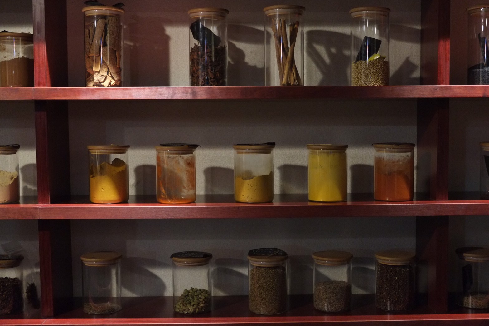 写真:店内にディスプレイされた様々なスパイスたち。カウンセリングのように、個人個人の体調やメンタルに合わせて、スパイスを調合して必要なものを提供することが目標なんだとか。