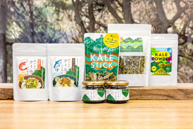 今週の出店では、「まんてんケール」の生葉のほか、スティック、ふりかけ、パスタなど、さまざまな加工品が並びます。なかでもイチオシは、「オイル漬け」。バケットにチーズと乗せてトーストにしたり、お刺身に添えてカルパッチョ風にしたり、パスタの具材としても楽しめる、ケールを気軽に取り入れる調味料です。