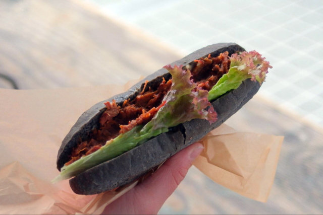 麻炭バンズのホットドッグ(ソーセージは超ビッグサイズなのでご注意!)やブリスケットドック(フードカート限定メニュー)など珍しいメニューもあり、ヘルシー志向の方から食べごたえ重視の方まで楽しめます。その際ぜひ一緒に味わってほしいのは、ホットのお汁粉。控えめな優しい甘さで冬のエネルギーチャージにぴったりの一品です。