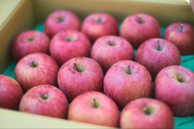 今年のサンふじは、気温の推移に恵まれたことで、香りが豊かで果汁たっぷりの仕上がりに。ひと口目から広がるみずみずしさと、後からじんわり続く甘みが特徴。「できる限り美味しい状態で楽しんでほしい」という思いから、樹上でしっかり熟すまで待ち、収穫のタイミングを見極めて収穫。そのため、一つ一つ表情は異なりますが、どれも自信作だそう。