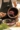 「厚揚げとビーツ、すもものソムタム」は、普段店のメニューとして出している「ビーツとカツオのソムタム」を今回のマーケット用にアレンジし、カツオではなく厚揚げを入れて、すべて植物性のモノで勝負しました。ニンニク、パクチーの根っこ、青唐辛子をクロック(=鉢)に入れ、そこにナンプラー、砂糖、レモン果汁、オリーブオイルを加えて即席のドレッシングをつくり、ビーツと和えて厚揚げと合わせていきます。鉢のなかから目の前で香りが立つとライブ感が出ますよね。今回はすももを使用しましたが、これから旬を迎えるぶどうを使用しても美味しく仕上がります。