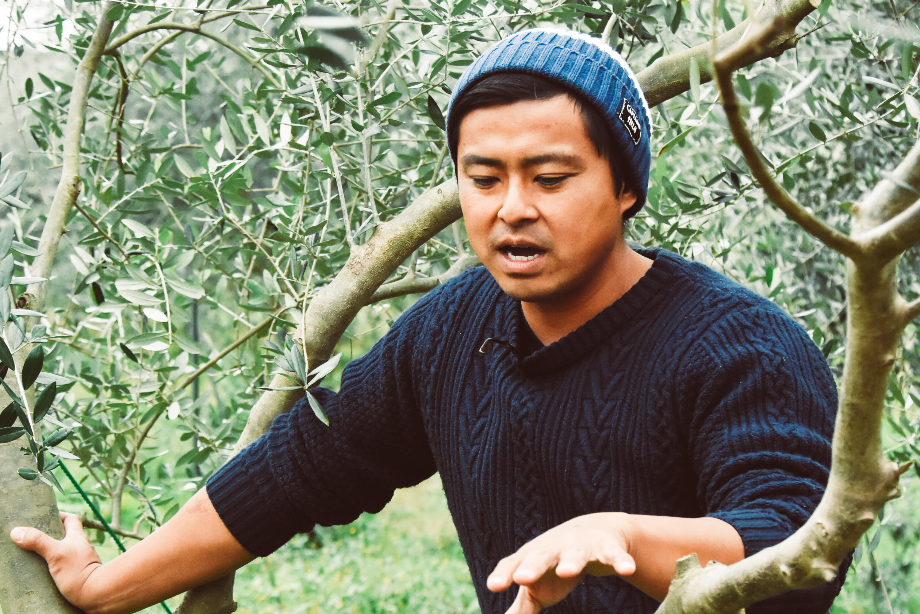 神奈川県の小田原市、南足柄市の畑で、身土不二を広義に捉え、オリーブや西洋野菜オリーブと西洋野菜を栽培。「世界に通用するオリーブオイルを作りたい」という熱い思いを胸にオリーブ畑の面倒を見ながら、今はオリーブオイルに合う西洋野菜を農薬不使用・植物性肥料のみで育ててファーマーズマーケットで販売している。