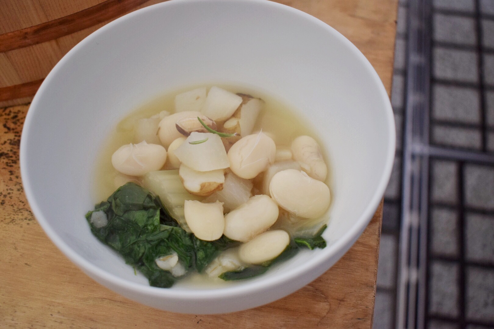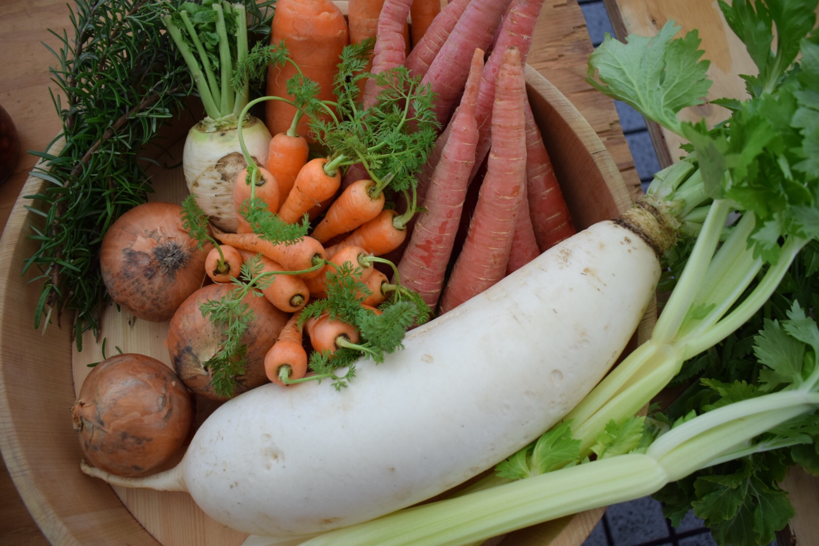 菊芋や大根をたっぷり加えた昆布だしのスープは、ほっこりする味でありながら、一緒に煮込んだセロリの爽やかな香りが良いアクセントになりました。