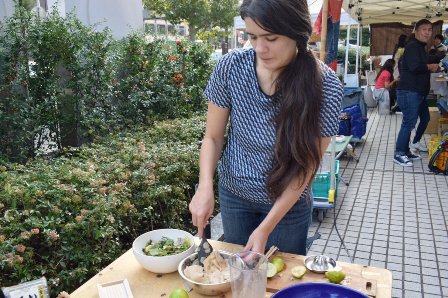 一緒に料理をしているうちに初対面の人と仲良くなったり、旬の野菜や農家さんについて知ることができたり。ワークショップの後には、紹介した出店者さんのブースに寄って買い物をして帰る参加者の方もいました。